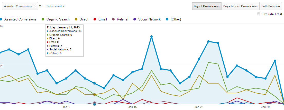 Wouldn’t it be really valuable for a business (site) owner to find out the exact path that leads to a successful sale. Multi Channel Funnels in Google Analytics does the same thing and assists the business owner in showing the traffic sources and the entire activity that leads to a defined goal conversion.